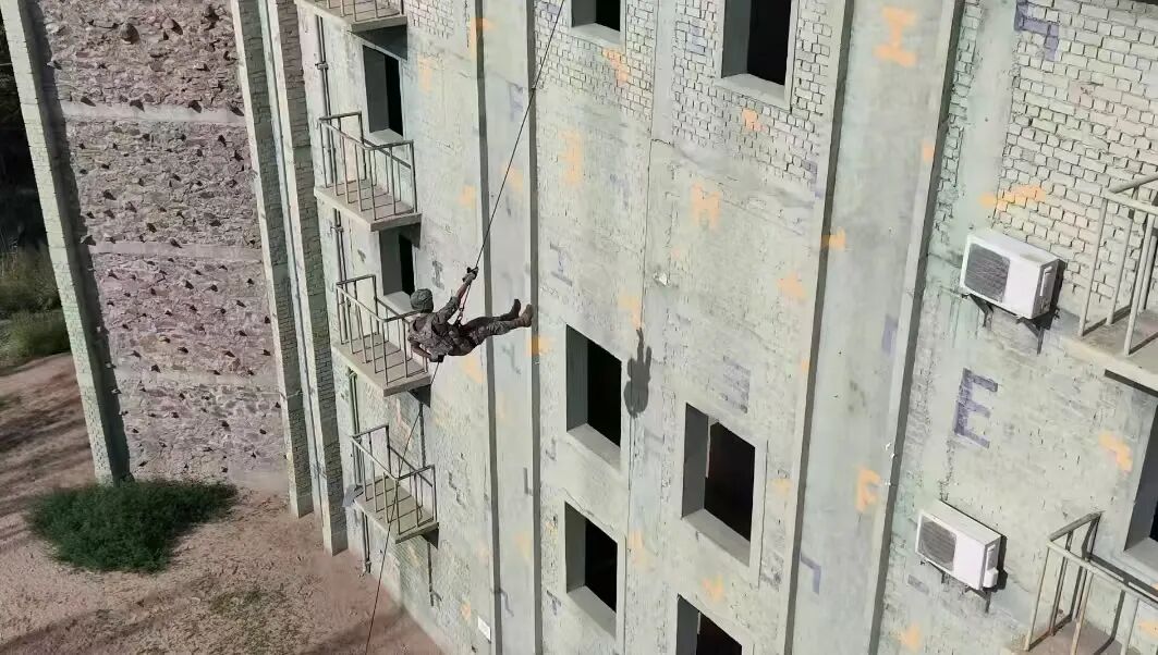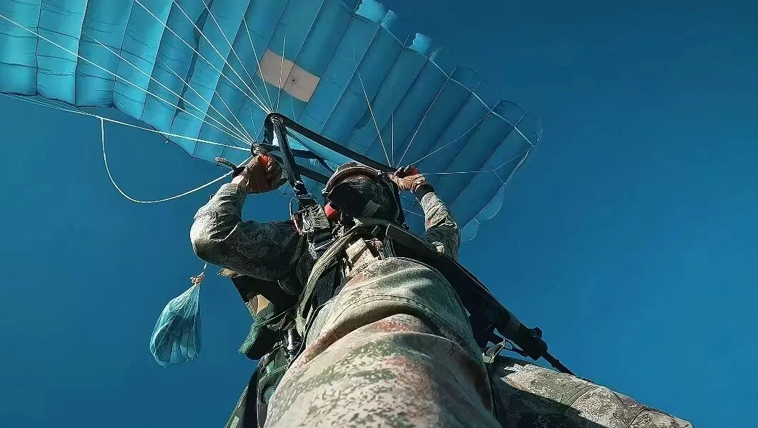 进入特战旅后的第一项硬核课目,是伞降训练。2024年夏天,训练场的地表温度常常突破40℃。叠伞、离机、着陆,每一个动作都要反复训练成百上千次。伞绳磨破了手指,血泡结了又破,作训服湿了又干,后背满是盐霜。他从地面模拟练到高空实跳,第一次从机舱跃出的那一刻,风声呼啸,他没有害怕,只觉得所有的汗水都是值得的。最终,他以全优成绩完成伞降考核,拿到属于自己的“蓝天通行证”。